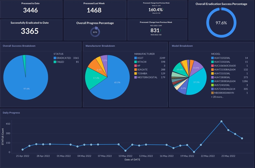 - Recovery rate: The percentage of drives that are provably erased and eligible for repurposing or refurbishment.